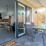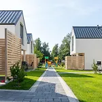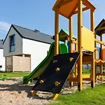 Die 6-Zimmer- Na Fali Domki Letniskowe verfügt über Parkplätze und eine Terrasse mit Aussicht auf den Garten.